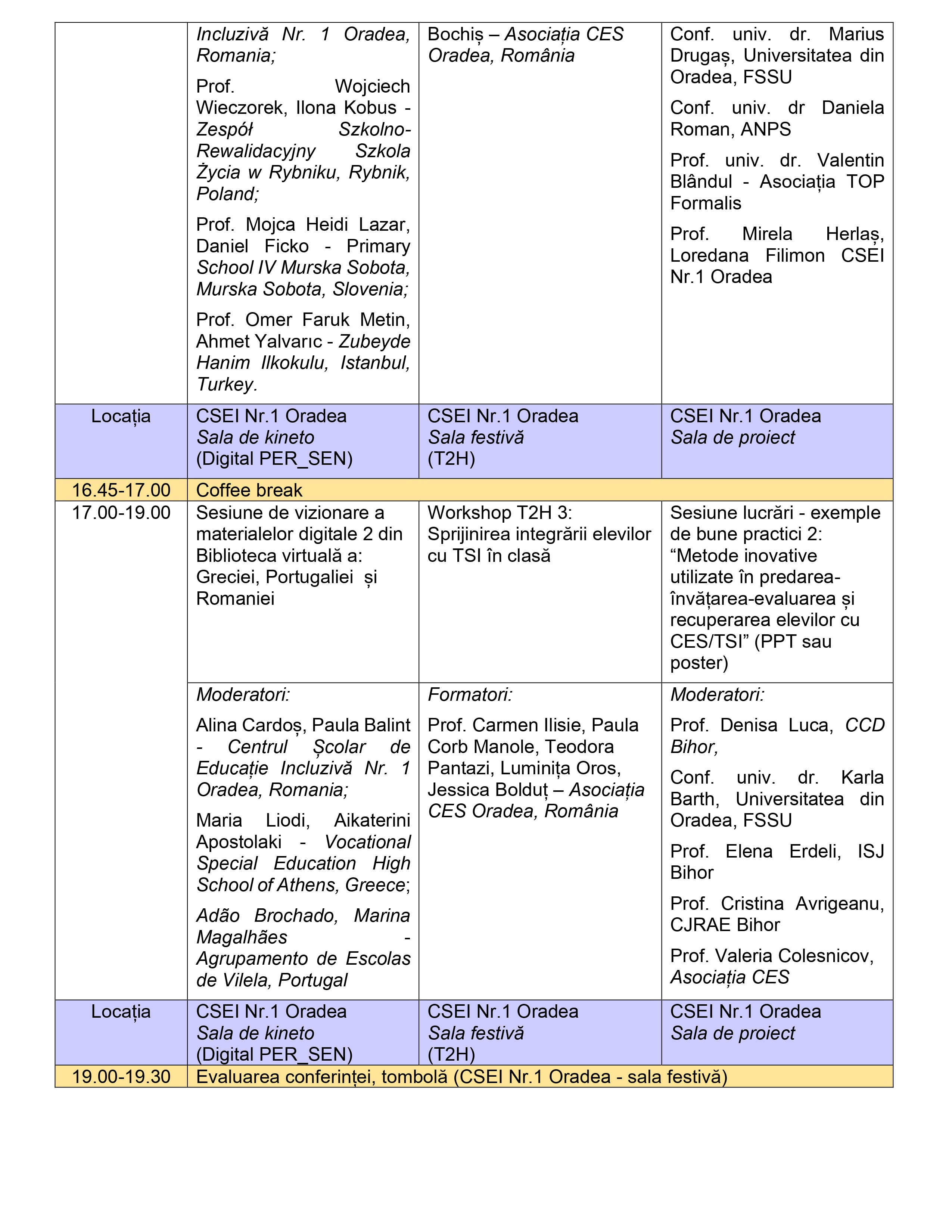 • prof. psihoped. Valeria Colesnicov, Centrul Şcolar de Educaţie Incluzivă Nr.1 Oradea/ vicepreşedinte Asociaţia CES;